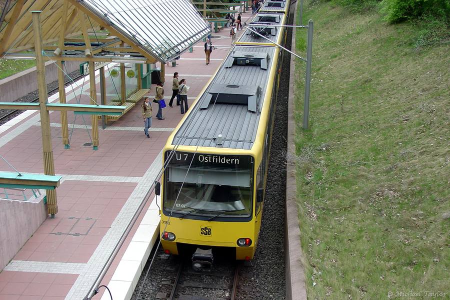 Stuttgart . DT8.8 unit 3182 was the trailing unit in a U7 service to Ostfildern at Ruhbank on Tuesday May 4th, 2004. Photo by Michael Taylor, Binbrook, Ontario, Canada. (michael@einbahn.org) Website www.EinBahn.org Binary file 3182-stut-mt.txt matches |