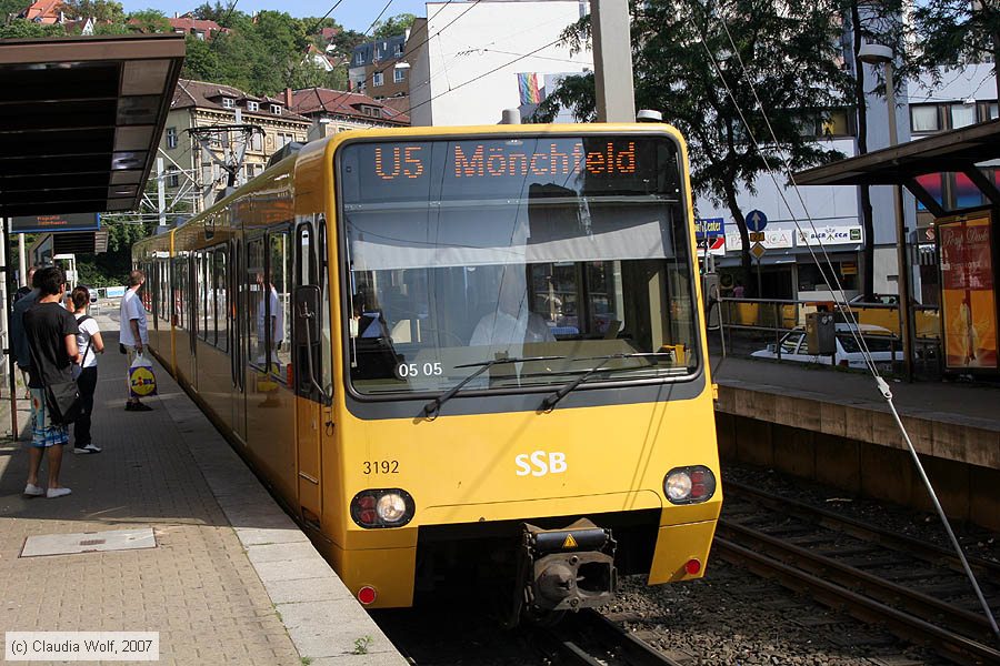 Stuttgart - Stadtbahn - 3192 Triebwagen 3192 am 08. Juni 2007 auf Linie U5 an der Haltestelle Olgaeck.