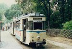 Woltersdorf T57-tramcar (built 1960 by Gotha) at Breitscheidstrasse on 7.2.96. Photo by S. Wuest. |