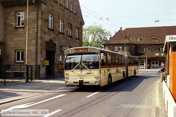 Esslingen - 303 DUO-Bus 303 auf Linie 1 am Bahnhof Esslingen am 13. Mai 1982.