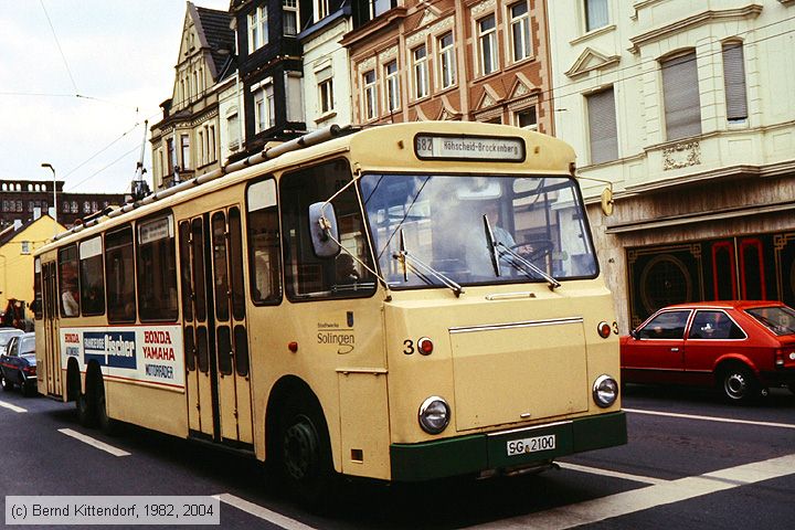 Solingen - O-Bus - 3 Oberleitungsbus 3 am 27. April 1982.