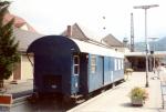 | DB Netz (?) 60 80 99-26 305-5 Wohnwerkstattwagen. It has some subtle differences to the other car; there have been countless rebuilt versions of these - semi-stationary at stations to provide temporary living space and workshops for trackbuilding crews. Weil am Rhein 2011-09-29. |