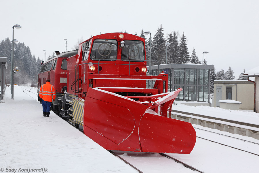 DBAG - Germany Snowplow with a diesel locomotive class 218 waiting for snow. Hof, 23-02-2004