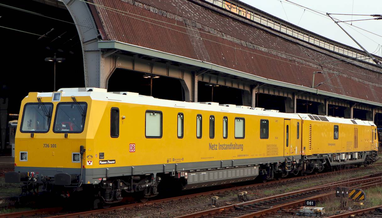 DB Gleismesszug 726 002-9 im Bahnhof Hannover Hbf. DB track measurement train 726 002-9 at Hannover central station.