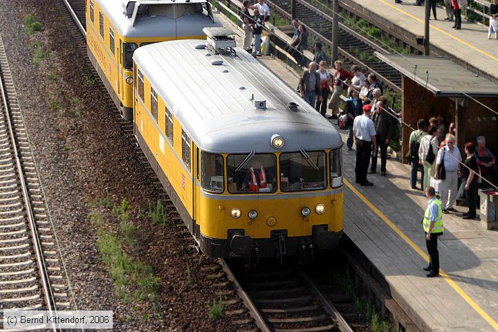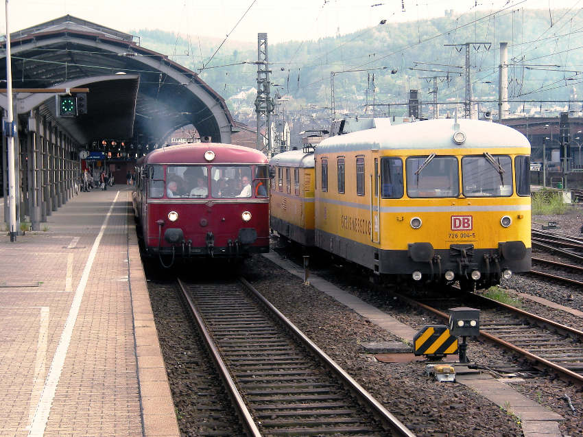 In the 21st century DBAG still operates vehicles based on Uerdinger rail-cars, like the track-measurment train 726 004. On 26th of April 2008 it was passed in Hagen Hbf by a retired "brother", which made a trip for fun and train-enthusiasts. Photo ©Arnim v. Herff |