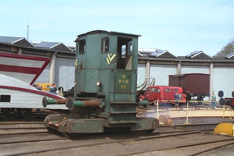 DSB tractor 52. Build 1932 by Pedershåb retired in 1984. Has a 78 hp Leyland diesel engine. This class is nicknamed "The Wardrobe" in danish "Klædesskab" for its shape.