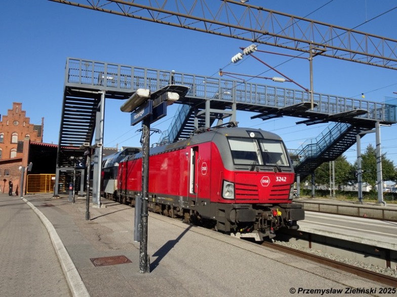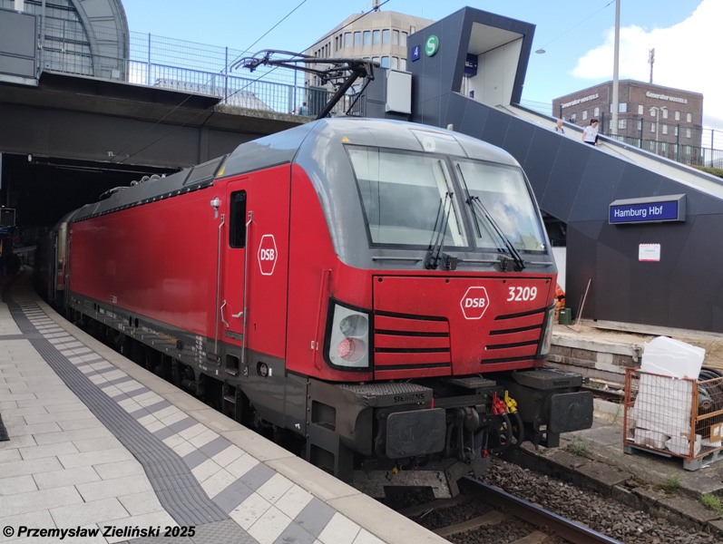 | 91 86 0003 216-6 DK-DSB / EB 2016. Siemens Vectron AC used for Intercity trains between Hamburg Hbf and København H. These trains have replaced the previously operating DSB MF-IC3 diesel units, except on the line Hamburg - Aarhus. Until new Talgo units are delivered, the trains are composed of German Intercity cars. Hamburg Hbf, 2023-07-12. |