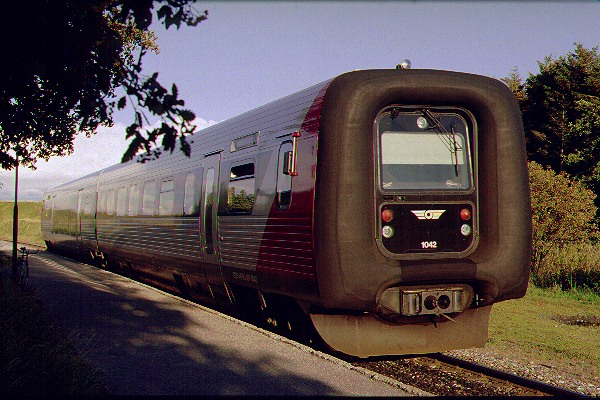 GDS - HFHJ MF 1044/1144. The new trains on the private railways in Denmark are of high international standards. Here a MF i Frederiksværk, 14/8/98.