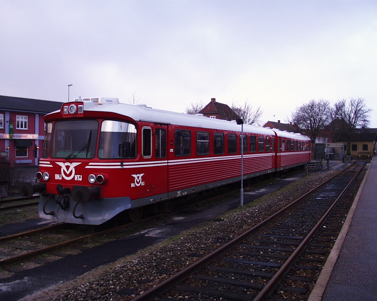 OHJ-HTJ Motorcar MO 25, newly rebuilt. Holbæk Depot 1997. OHJ-HTJ Triebwagen MO 25, neulich umgebaut. Abstellanlage Holbæk 1997.