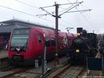 Steam-trip with Nordsjællands Veterantog on 26. april 2013. DSB K 582 and S-train in Klampenborg Station. Dampf-sonderfahrt mit Nordsjællands Veterantog am 26/4 2013. DSB K 582 und S-bahn in Bahnhof Klampenborg.