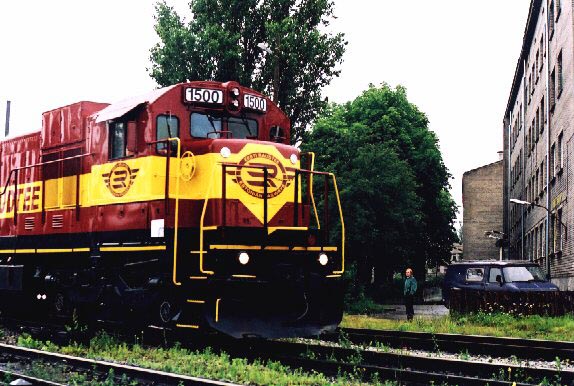Eesti Raudtee - Estonia Second-hand American locomotive 1500 (type C36-7) is seen in front of the workshop in Tapa. To the left stands a huge Russian diesel locomotive class 2TE116. Tapa, 19-07-2005 Digital photo by Marco van Uden |