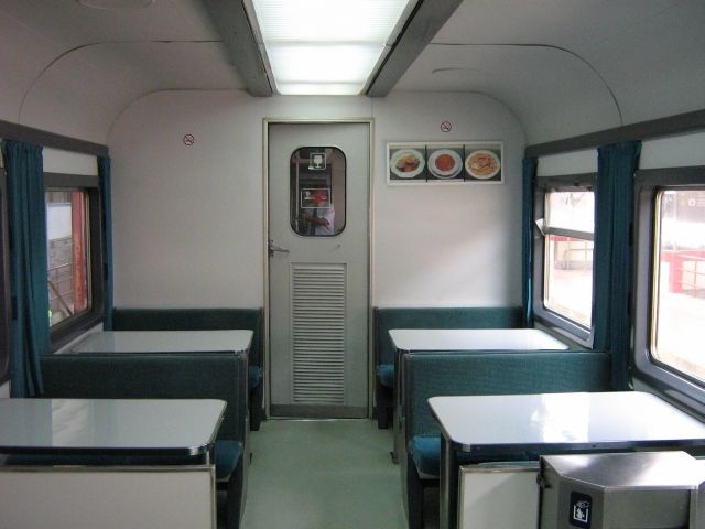 This pic is looking towards the small counter and the galley. While the "Estrella" ambiance doubtless smacks of the 80s and looks fairly old-fashioned, overall condition remains quite good. 07th September 2004. Photo by Josep Serre (josepserretren@hotmail.com) (Acknowledgements), from Tranvia.org. Posting and Comment by P.L.Guillemin (plguillemin@yahoo.fr). |