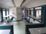 Class 9000 Cafeteria + Turista-class (open-room) car (BR4t-9800) of Renfe-LD.