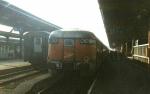 Genf, Herbst 1990. Ein Talgo steht im franzoesischen Teil des Bahnhofs abfahrbereit
