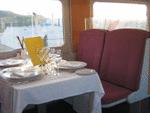 Interior of a Talgo 7 Restaurant-car (TR7-710), in order for the dinner service.