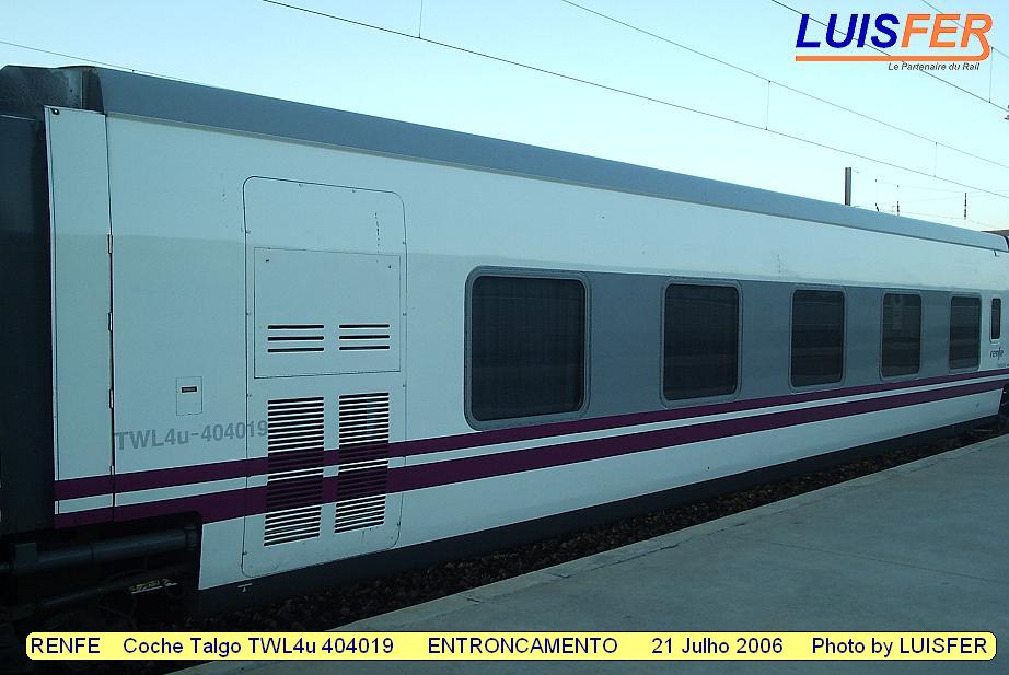 en RENFE Talgo Car TWL4u 404019 in Station of ENTRONCAMENTO / fr RENFE Voiture Talgo TWL4u 404019 en Gare de ENTRONCAMENTO / ca RENFE Coche Talgo TWL4u 404019 en la Estación de ENTRONCAMENTO / de RENFE Wagen Talgo der TWL4u 404019 auf der Bahnhof ENTRONCAMENTO / it RENFE Carrozza Talgo TWL4u 404019 nella Stazione di ENTRONCAMENTO / pt RENFE Carruagem Talgo TWL4u 404019 na Estação de ENTRONCAMENTO / 2006 07 21