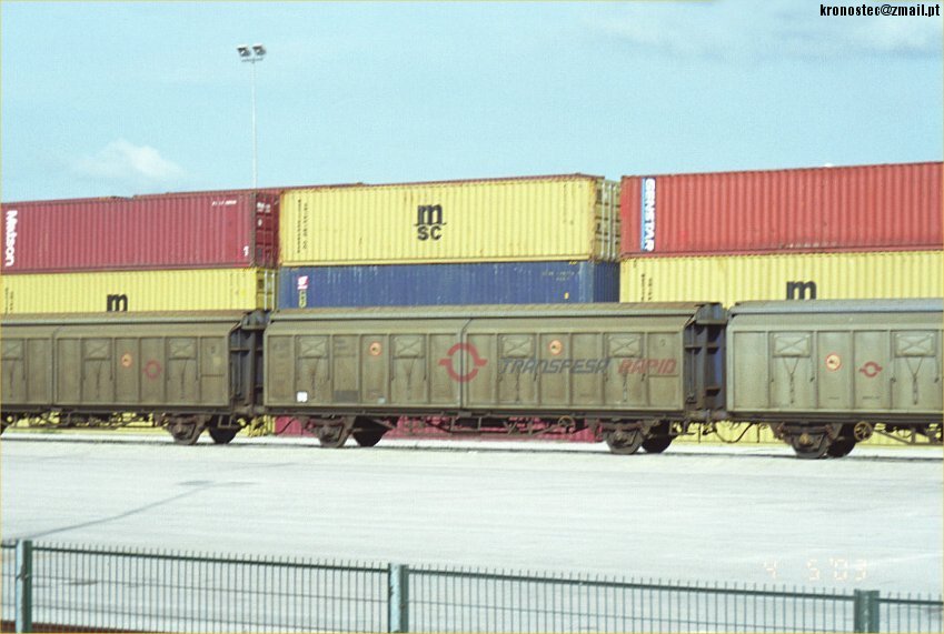 RENFE "TRANSFESA RAPID" closed wagon type Hbfis. Parked in the "Parque de Mercadorias" in Bobadela (Lisbon - Portugal). Photo: 27/04/2003.