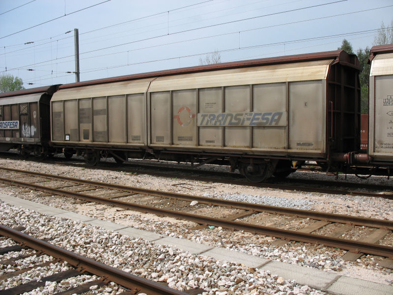 Vagon cerrado de Paredes Corredizas / Closed wagon of sliding doors. Company: TRANSFESA Station: Valladolid / 08-2002
