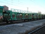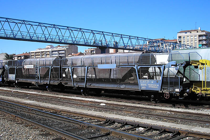 Vagon de 2 pisos portacoches / Double-deck car carrier. Company: SEMAT / Customer: POOL IBERICO FERROVIARIO Station: Valladolid 08/2002