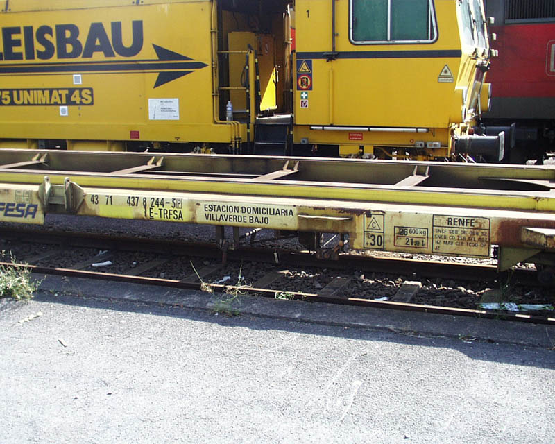 Transfesa 24 71 Renfe 437 0 175-0 P Laaers. Total length 31,00 m. Built by TAFESA in 1999. Hendaye (France), 16/03/2006. Photo Jean-Pierre Vergez-Larrouy (jean-pierre.vergez@tele2.fr) |