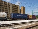 Un train de containers "Mega Combi" sur la voie 1 de la gare de Bordeaux St-Jean. 20/09/2008