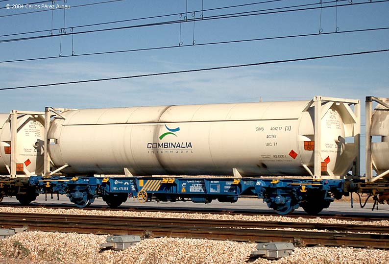 Plataforma MCce para el transporte de contenedores, en este caso contenedores de gases licuados. Platform MCce for the transport of containers, in this case containers of liquified gases. Station: Moncofar (Castellon) - 23/02/2004
