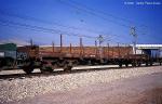 Vagon Plataforma con Teleros / Flat wagon with stanchions. Renfe: MMQcep / UIC: Rs Color marron (color antiguo) / Brown color (old color) Station: Las Palmas (Castellon) - 11/2000