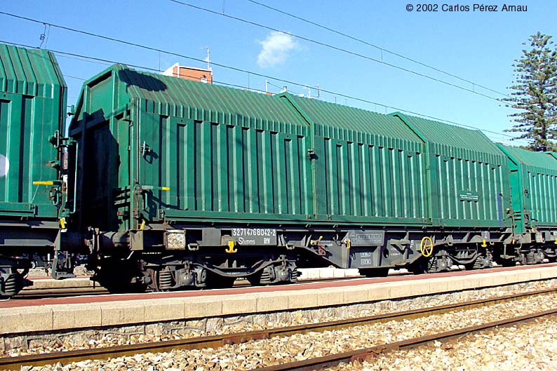 Vagon Telescopico / Steel sliding car. Renfe: JJtl / UIC: Shims Company: RENFE Las Palmas (Castelló) / 2-2001