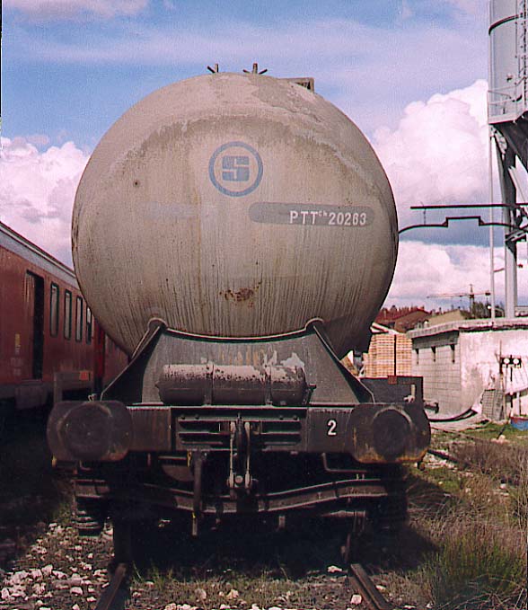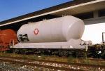 Vagon Tolva para transporte de pulvurulentos / Boxcar Chute for transport of powdered material. Renfe: PTTchp / UIC: Uacs Company: TRANSFESA Station: Benicassim (Castellon) 09/07/2003