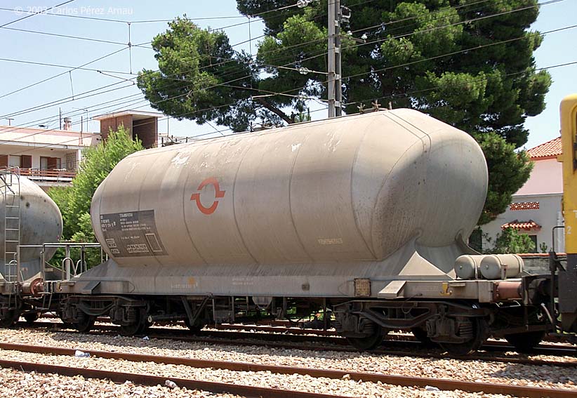RENFE "TRANSFESA" wagon type Uacs for cement transport. Photo taken in the summer of 2003 near the CIMPOR cement plant in Alhandra (Lisbon - Portugal). Photo and scan: Ivan Gomes