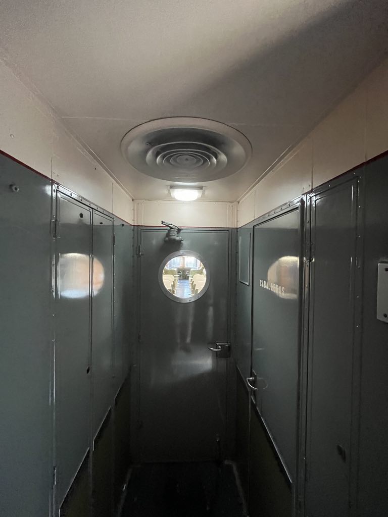 Coche de servicio. Las composiciones Talgo II, constaban de locomotora, 15 coches intermedios y 1 coche mirador. Car of service. The compositions Talgo II, consisted of locomotive, 15 intermediate cars and 1 car mirador. Museo: Vilanova (Barcelona) 5/8/01