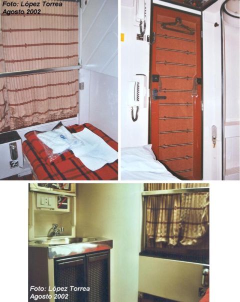 Those cars were rebuilt from old Class 8000 cars in 1988/1989, to offer quality sleeping-car accommodation on "Estrella" services. Unlike TWLd-x23 Talgo cars, these cars do not have private toilets, and only offer a shower in addition to the traditional washbasin. Ambiance smacks very much of the 1980s RENFE, but overall condition remains fairly good. 01st October 2003. Photo by Albert Maestre (a448@tranvia.org) (Acknowledgements), from Tranvia.org Posting and Comment by P.L.Guillemin (plguillemin@yahoo.fr) |
