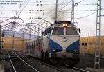 RENFE diesel locomotive 333-077 with Talgo Pendular Cartagena-Madrid near Hellin.