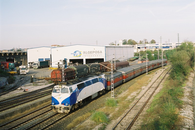 Newly-reliveried to "Grandes Lineas" standards, Loco 333 103 of RENFE-GL was on duty on Madrid-Valencia de Alcántara, on the Spanish-Portuguese border. One can spot Trenhotel 875 "Antonio Gaudi" further left, awaiting departure to Barcelona-Sants. Madrid-Chamartin. February 2004. Photo by Ramón Gomez Fernández-Tejeda (ramgomez@telefonica.net) (Acknowledgements), from Tranvia.org. Posting and comment by P.L.Guillemin (plguillemin@yahoo.fr) |