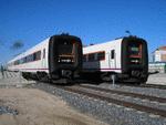 Renfe - Double train 594.102 + 594.602 and 594.105 + 594.605 coming from Madrid, departures to Salamanca at Peñaranda de Bracamonte station, p. k. 70.800 Ávila to Salamanca railway. 15/12/2007.