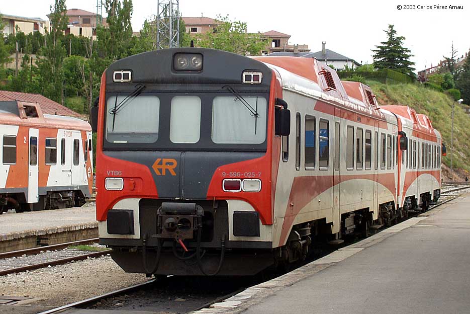 TL "Tren Ligero" Con el nuevo carenado y colores de "Regionales". Dmu TL-596 of Renfe, result from the reform of 596 series. Soria 8/2000
