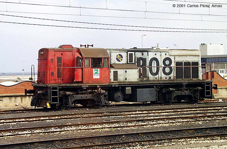 Locomotora diesel serie 308, construidas en 1966 por General Electric. Locomotive diesel series 308, built in 1966 by General Electric. Station: Vigo (Pontevedra) 14/8/2001