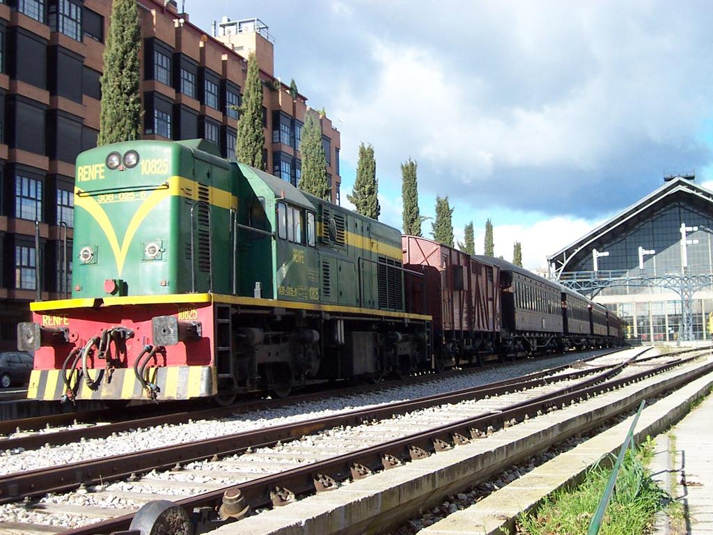 Another view of the preserved RENFE diesel locomotive class 308-025 with the special Christmas Train outside Delicias station. 31/12/2003 Delicias Railway Museum, Madrid.