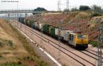 Locomotora 250.001.5 con un tren de contenedores por el nuevo corredor mediterraneo, antes de entrar en la nueva estacion de Benicassim. Locomotive 250.001.5 with a train of containers for the new mediterranean corridor, before entering in the new station of Benicassim. Station: Las Palmas (Castellon) 22/11/2003