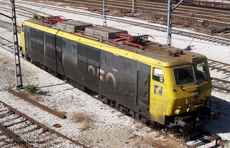 RENFE locomotora eléctrica 250.002, adscrita a Unidad de Cargas. En Estación de Tarragona.Fotografía tomada el 16 de agosto de 2001.