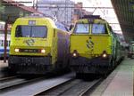 Locomotora electrica 252 , basada en el modelo “Eurosprinter” de Siemens y Krauss Maffei. Est. de Francia ( Barcelona ) 10/99 Renfe electric locomotive class 252. Photo : Carlos Pérez Arnau ,(carlosperez@studio3.es) |