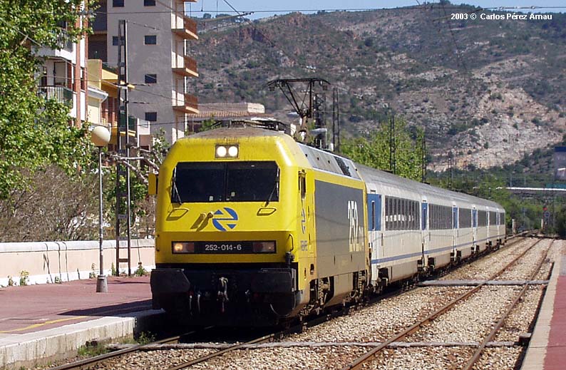 Locomotora 252 realizando un servicio Talgo, entra en Benicassim. Engine 252 carrying out a service Talgo, he enters and Benicassim. Station: Benicassim (Castellon) 11/03/2003