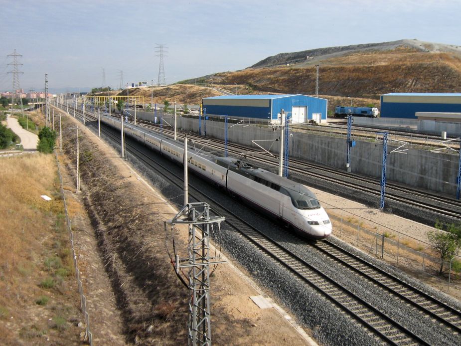 Refurbished S-100 set of Renfe-LD, seen on an unidentified AVE service shortly after leaving Madrid (Puerta de Atocha station or Cerro Negro depot), probably running empty to the Workshops of La Sagra.