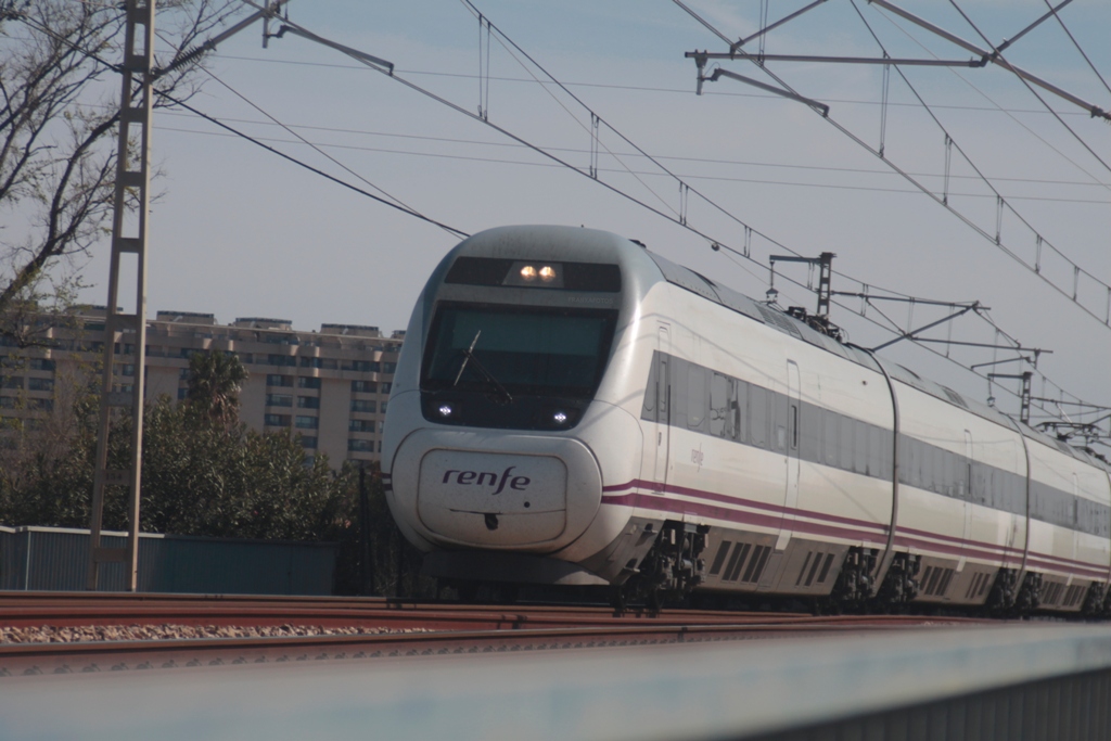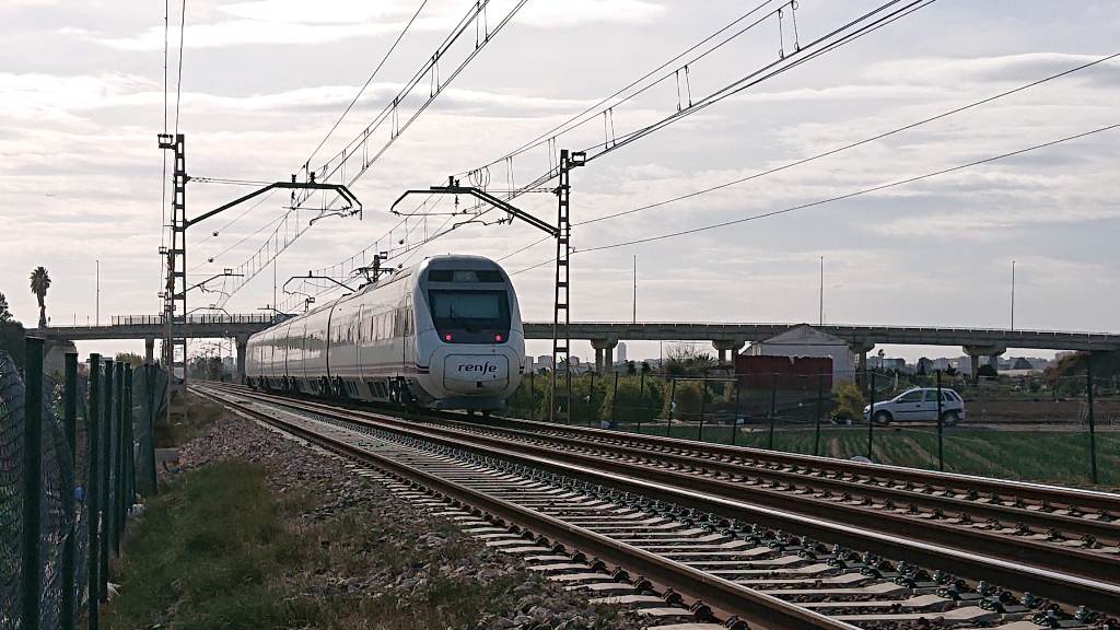 | "Avant" operado por una unidad 120, llegando a València. En ese punto acaba de cruzarse con un "TECO" "Avant", operated by a 120 RENFE unit, arribing to València. At this point, just crossed with a container train Foto tomada el 25 de marzo de 2023 |
