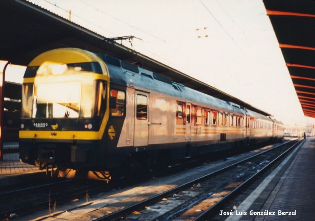 Renfe electric unit 9-444, Intercity from Madrid to in Madrid Chamartin April 89