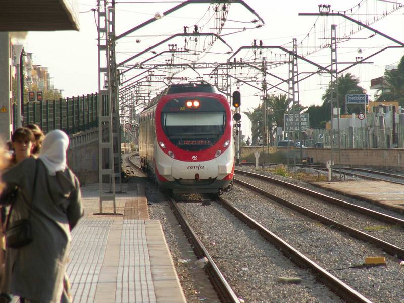 Civia en la estación de Gijón-Cercanías, el dia después de los atentados del 11 de Marzo en Madrid. Cubren el trayecto C1 Gijón-Oviedo. El dia 12 de Marzo de 2004 llevaban pasajeros de Gijón a Oviedo junto con las unidades 440. Normalmente no circulan por Asturias. Foto de Eduardo Aguilera Diez (aguilera17@wanadoo.es) |