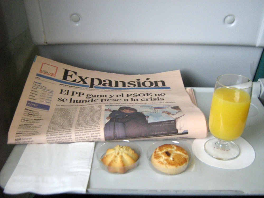 Complimentary Breakfast served in Preferente class on Alaris 1094 (Madrid-Puerta de Atocha ---> Valencia-Terminal).