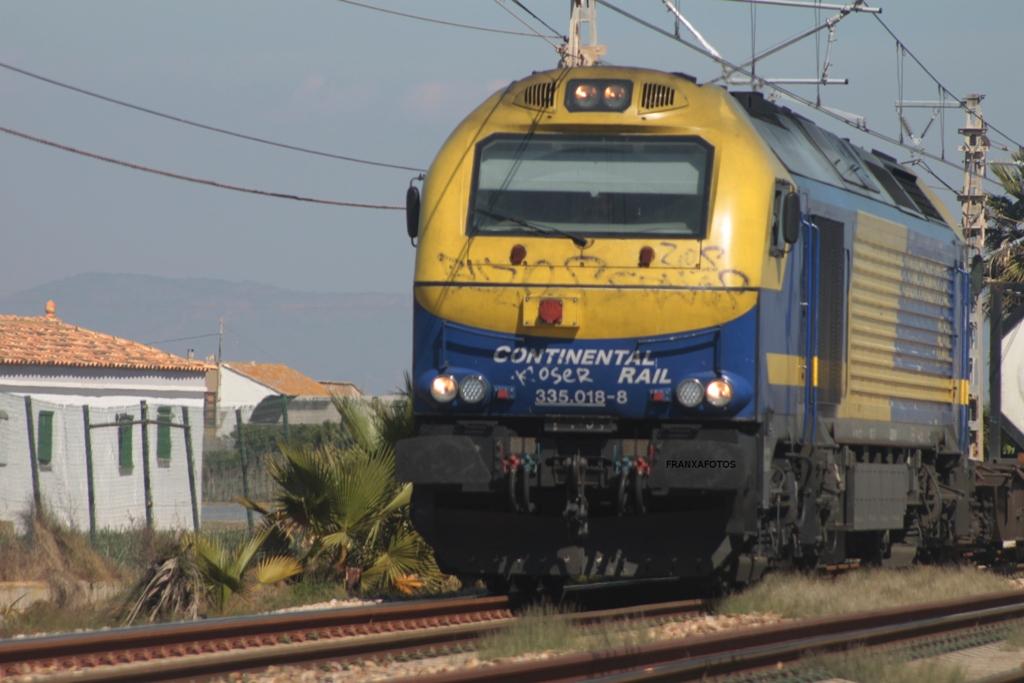 | Continental Rail 335-018, llegando a València en cabeza de un TECO Continental Rail 335-018, arribing to València, in head of a TECO (Container train) Foto tomada el 25 de marzo de 2023 |