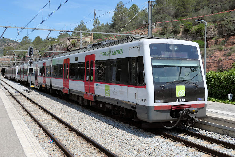 Class 213 EMU (213.22) of FGC, seen while leaving Monistrol de Montserrat, on a R5 service (Barcelona Plaça Espanya---> Manresa Baixador).