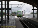 Stadler GTW EMU (AM1.1) of FGC, used on the Rack-railway of Montserrat, seen upon turnaround at Monistrol de Montserrat, connecting with R5 services to Barcelona Plaįa Espanya and Manresa Baixador.